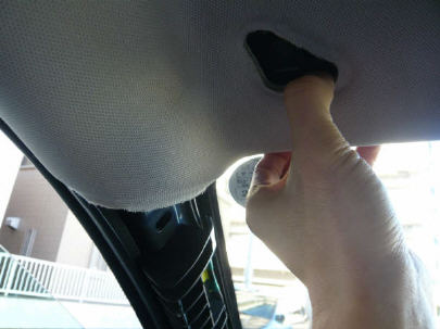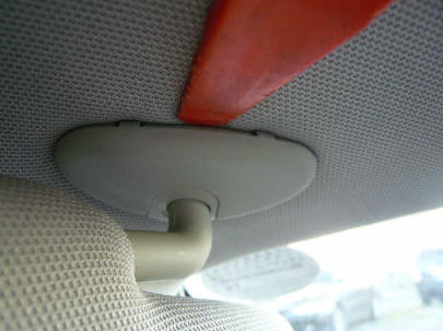 まずはサンバイザーの付け根を内張りはがしを刺してキャップみたいのを外します。