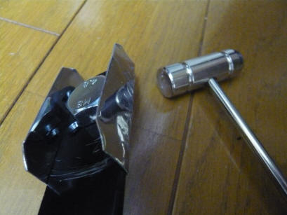 横からガンガンガンガン叩いてガイドとステーの隙間が無いようにします