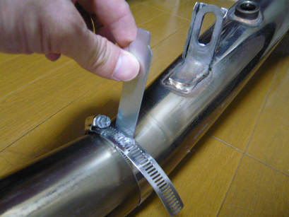 一番可能性がありそうな長さのステーをステンレスバンドで固定すると・・