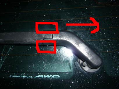 ドライパーなどでナット?を外すとワイパーを外せます。