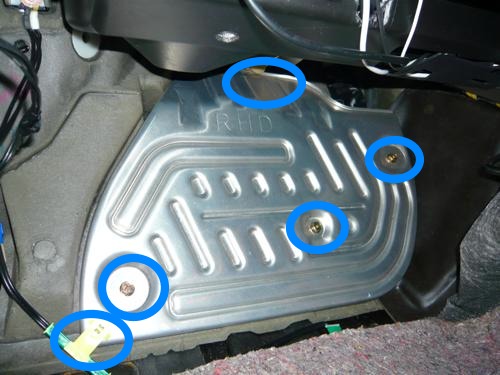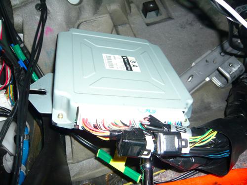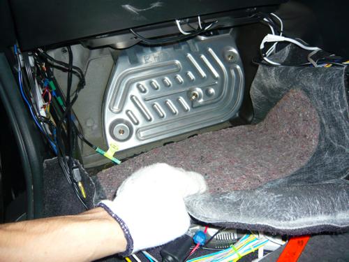フロアマットを強引にはがすとECU(カバー付)がおでましするので