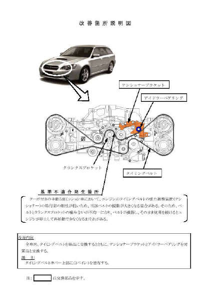 富士重工業は18日、スバル『レガシィ』のタイミングベルトに不具合があるとして、