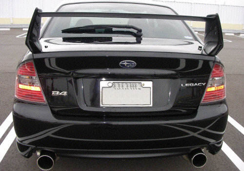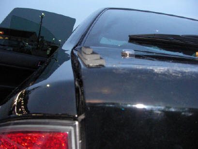 <ランエボ8リアウィング取り付け>B4ってトランクの端が曲線を描いてるので、そのままランエボ8のリアウィングを固定して、ナットとボルトをきつく締めていくとリアウィングが上に沿るように力がはいってしまうので、 写真のように、スポンジで段差を埋めました。 ![]()