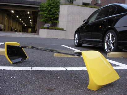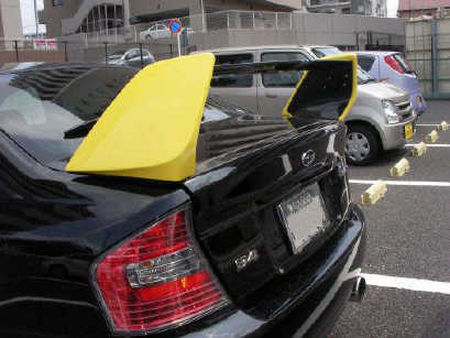 <切断>今回取り付ける、ランサーエボリューションⅧのリアウィングです。黄色い・・・ ![]()