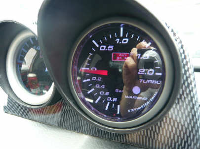 もちろん、ターボがどこからかかってるのが分かる様になった事と やっぱりオープニングセレモニーがついてるんで、 純正装備の回転・速度・水温・ガソリン計のオープニングセレモニーとの コラボが、発進前にかなりテンションあがります! |